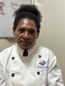 “I prepare and serve meals and assist kitchen hands to provide a smooth catering service for the workforce here at Frieda River,” she said simply, but her contribution is far from simple. Her professionalism, commitment to high standards, health and safety, and genuine care for her colleagues have made her a valued member of the FRL family.